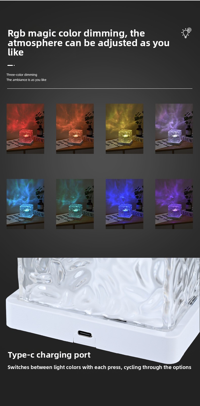 Color Changing Effects: Projects dynamic RGB lighting with multiple color options.